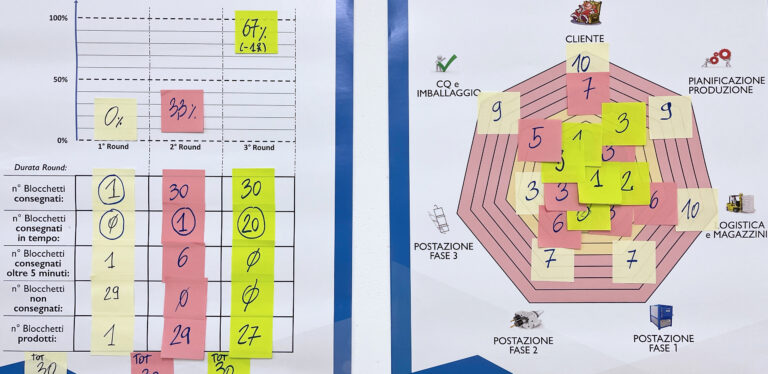 Le tre giocate, svolte nel corso della giornata di workshop, hanno permesso di introdurre progressivamente diverse soluzioni organizzative e operative per migliorare le prestazioni del sistema produttivo.